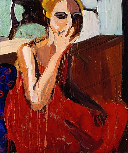 GIRL IN A RED DRESS, SMOKING, 2007